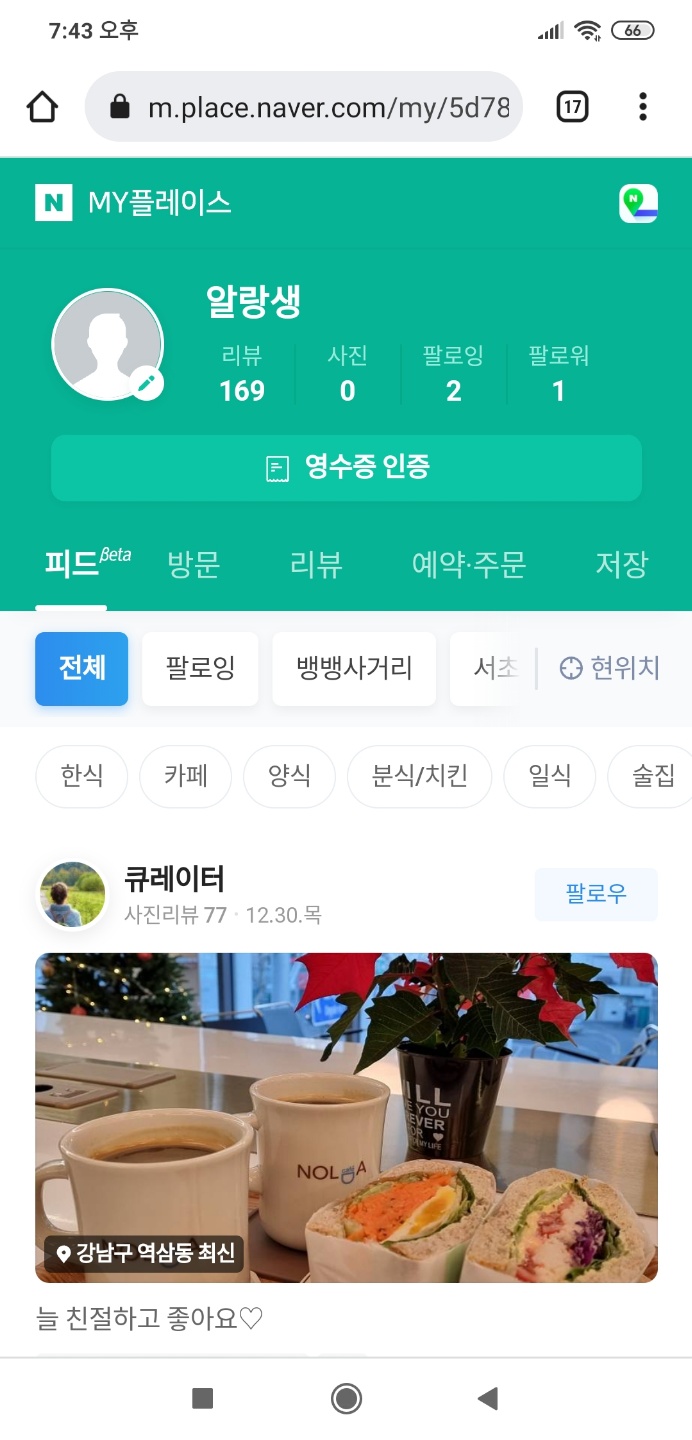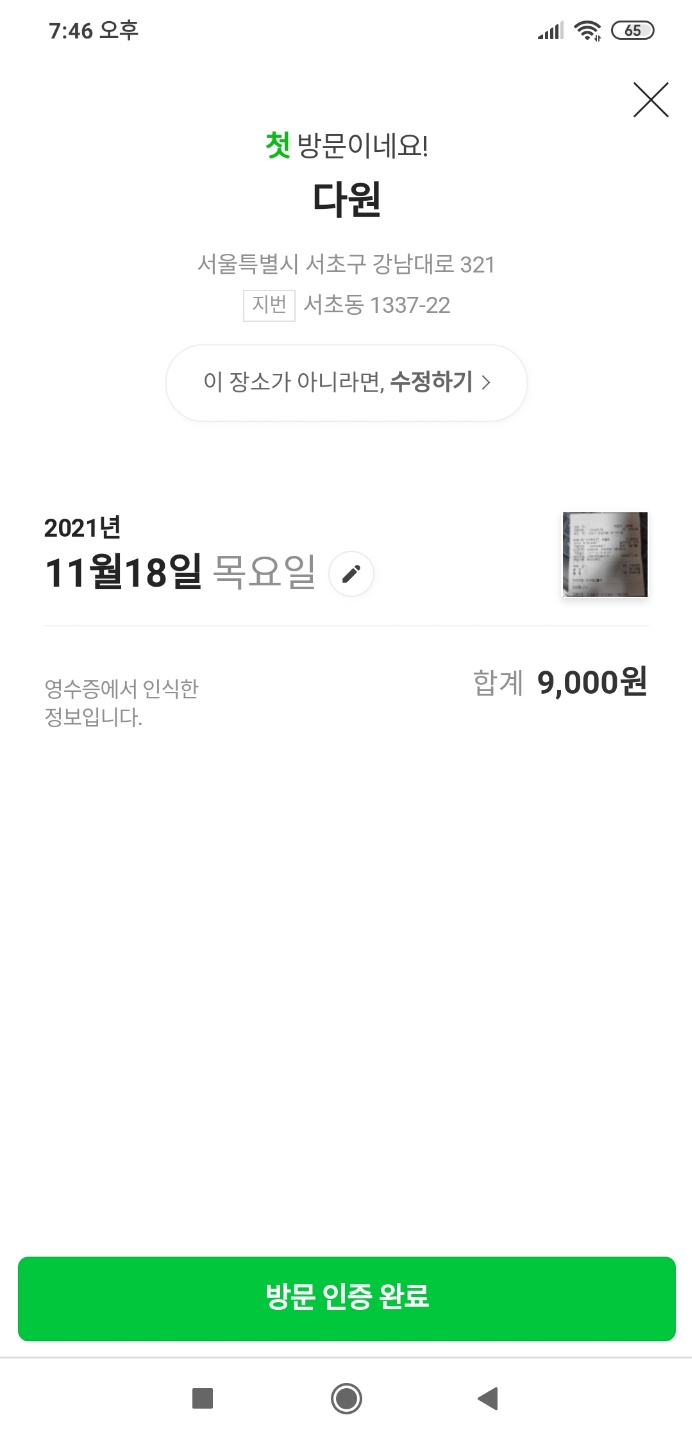 그래서 사실 언니와 커피마시거나 하면 언니가 따로 플레이스 인증하는게 아니면 영수증을 달라고 하고 하기도 합니다