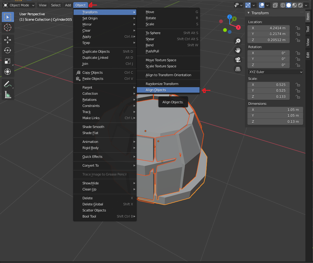 블렌더에서 여러 오브젝트들을 만들다보면 서로 축이 다르거나 여러가지 이유로 정렬이 어긋날때가 있다