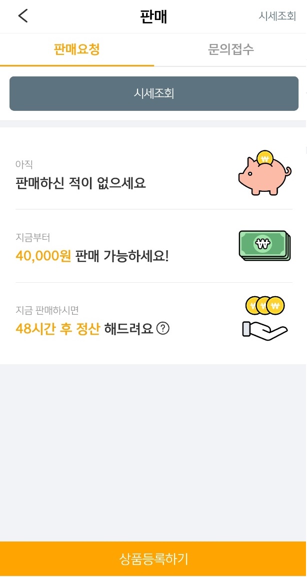 판매탭에서 내가 팔려는 상품의 시세조회를 할수 있다