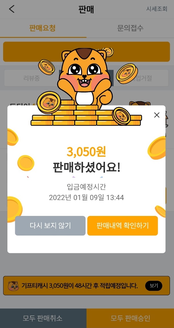 판매승인이 되면 내 계정으로 기프티캐시라는 이름으로
