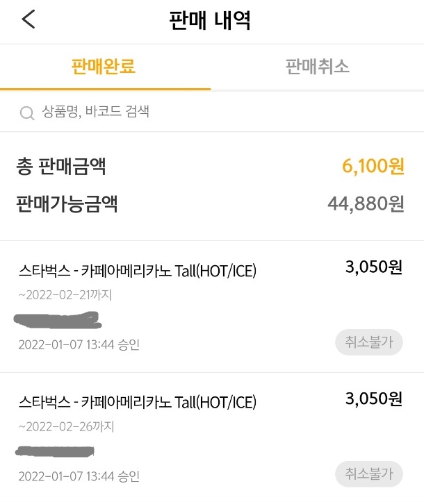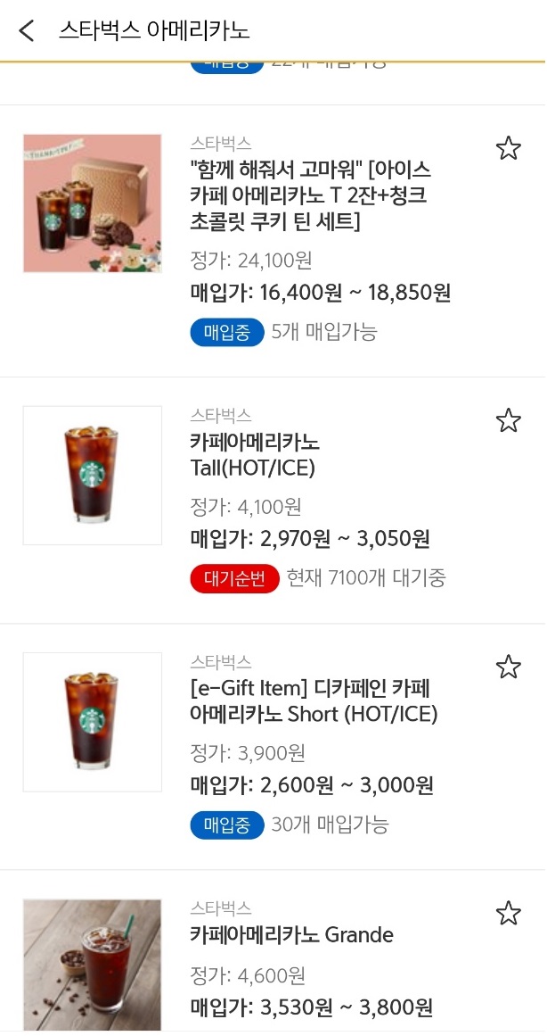 판매 하려는 스타벅스 아메리카노를 검색해 주었다