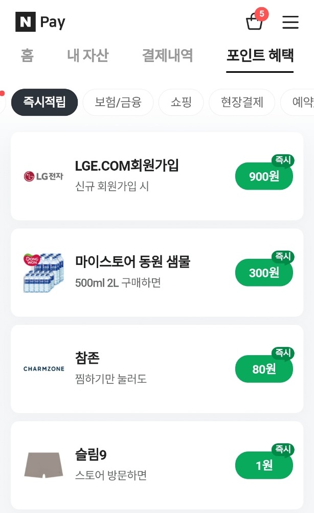 포인트 혜택란에서는 구매 , 미션 참여등으로 네이버 포인트를 지급하는데