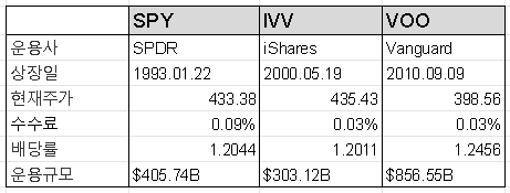 운용규모는 VOO > SPY > IVV 순으로 규모가 크다