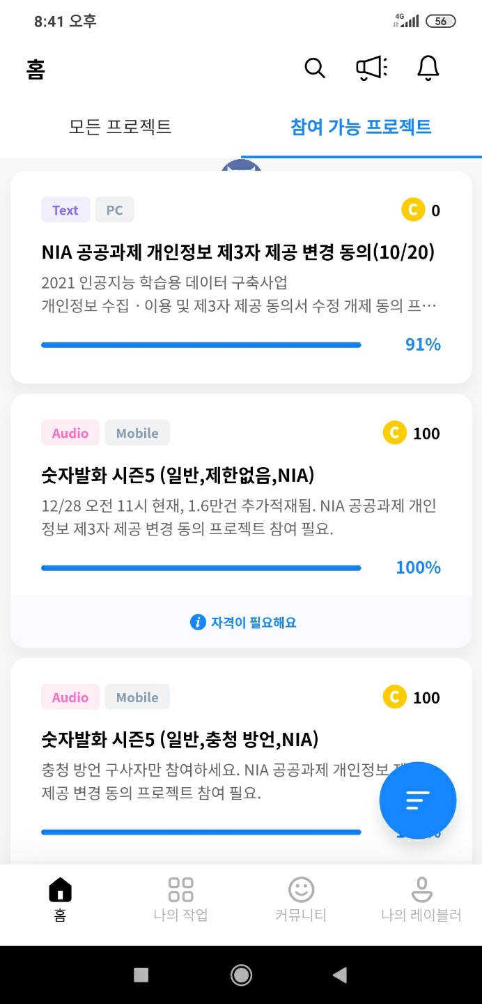 로그인을 하면 내가 할수있는 프로젝트들이 나옵니다