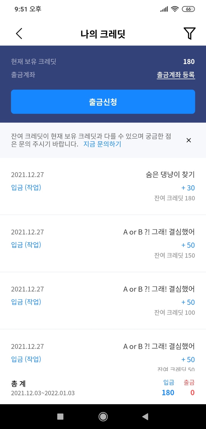 작업을 하면 30크레딧을 주는데 크레딧들을 모아 현금화를 시킬수 있습니다