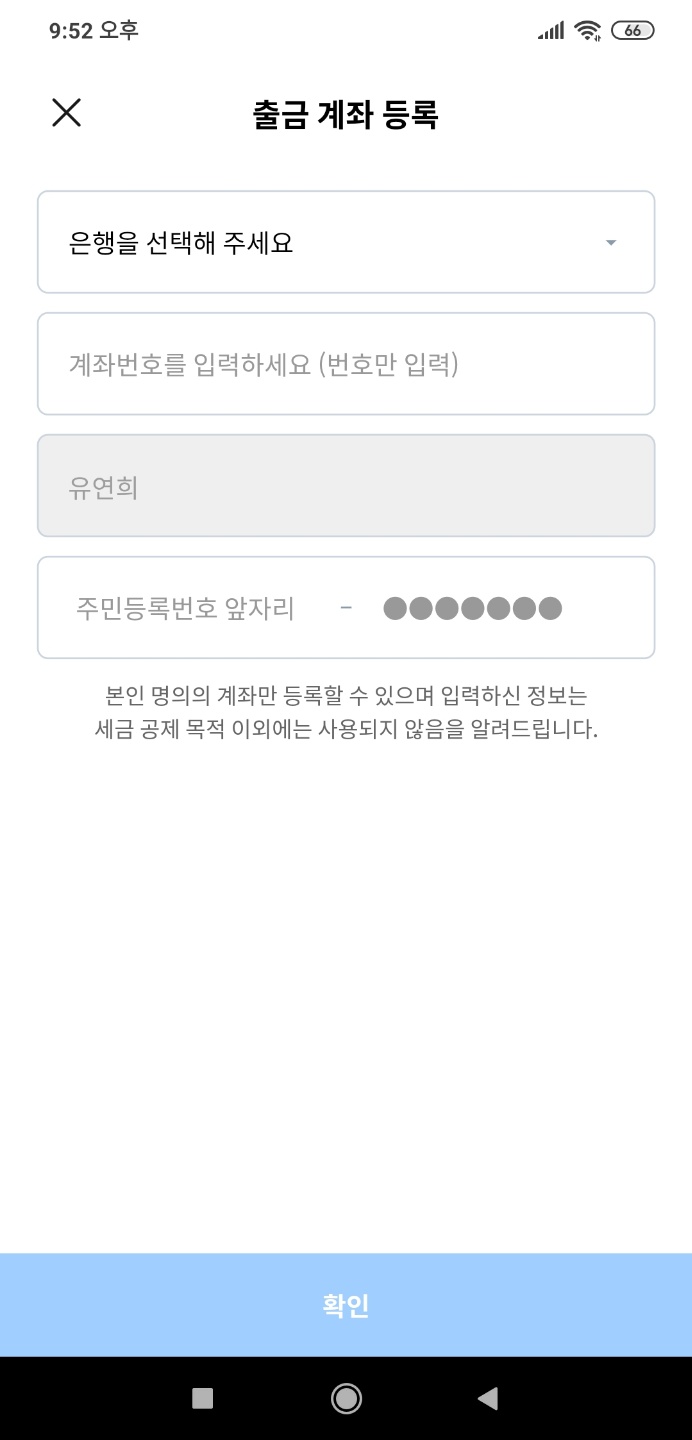 출금한 계좌 내역과 정보등을 적어주면 등록이 완료됩니다