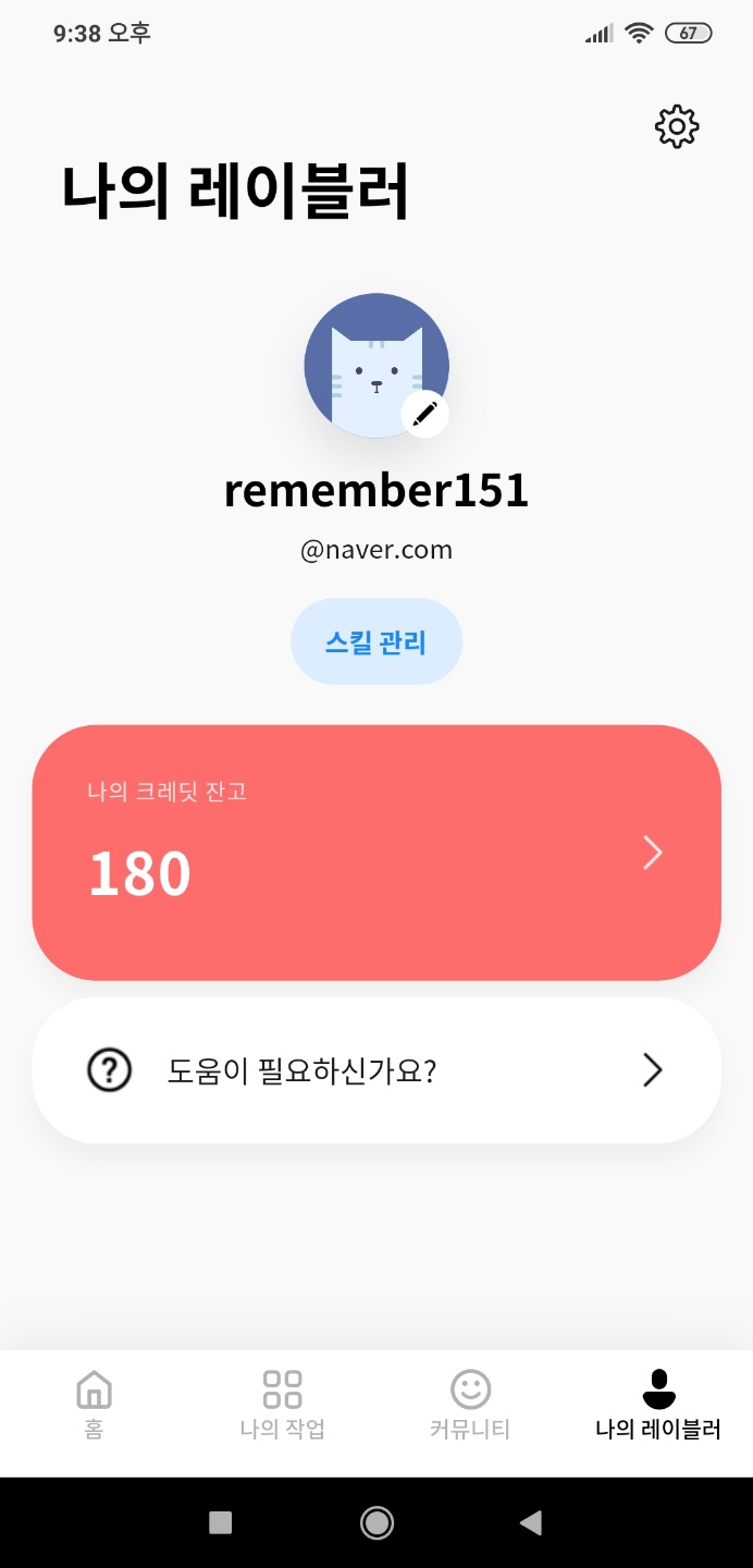 아래쪽의 나의 레이블러 탭으로 들어가면 내가 보유한 크레딧을 볼수있는데요